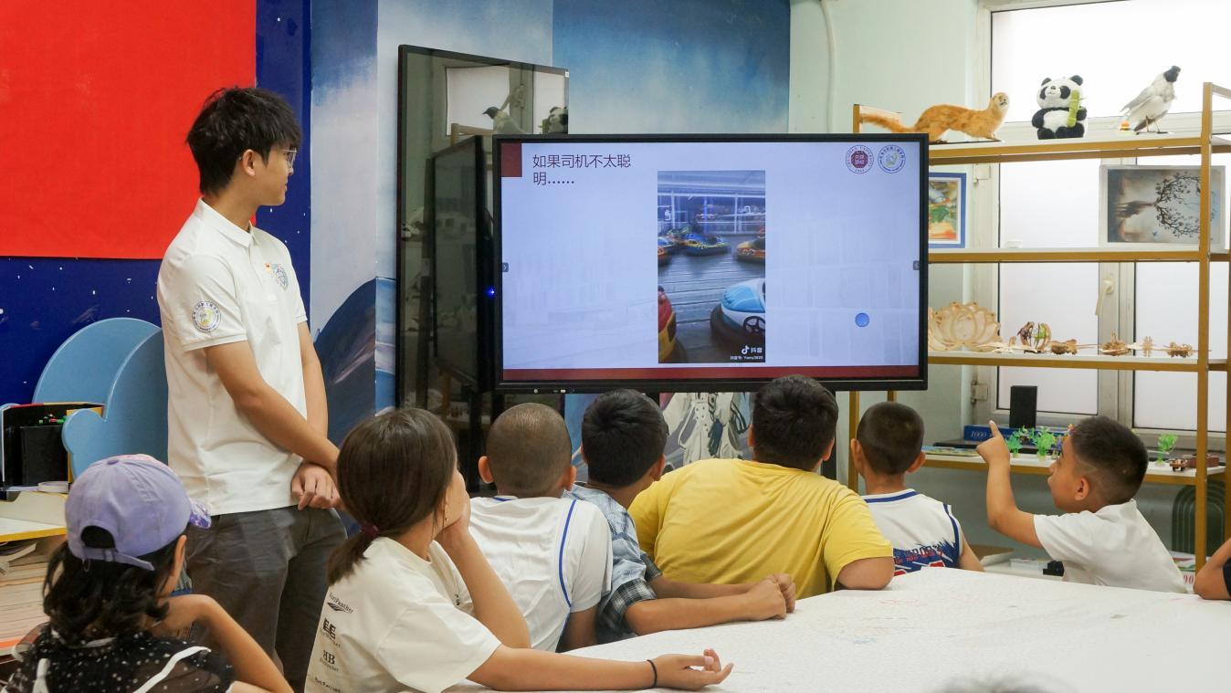 学院臻工创新党支部党员、智能车俱乐部硬件技术顾问、实践队员许捷成通过沉浸式体验环节,带领孩子们揭开智能小车的神秘面纱。从常见的汽车到会“思考”的智能车,现场演示“无人控制驾驶”,让孩子们直观感受传感器如何让车辆实现自主按照规划路线前进;同步讲解陀螺仪与平衡算法的协作机制,让无人两轮车、独轮车在地上保持平衡,哪怕受到干扰也不会倒下,引发阵阵惊呼。