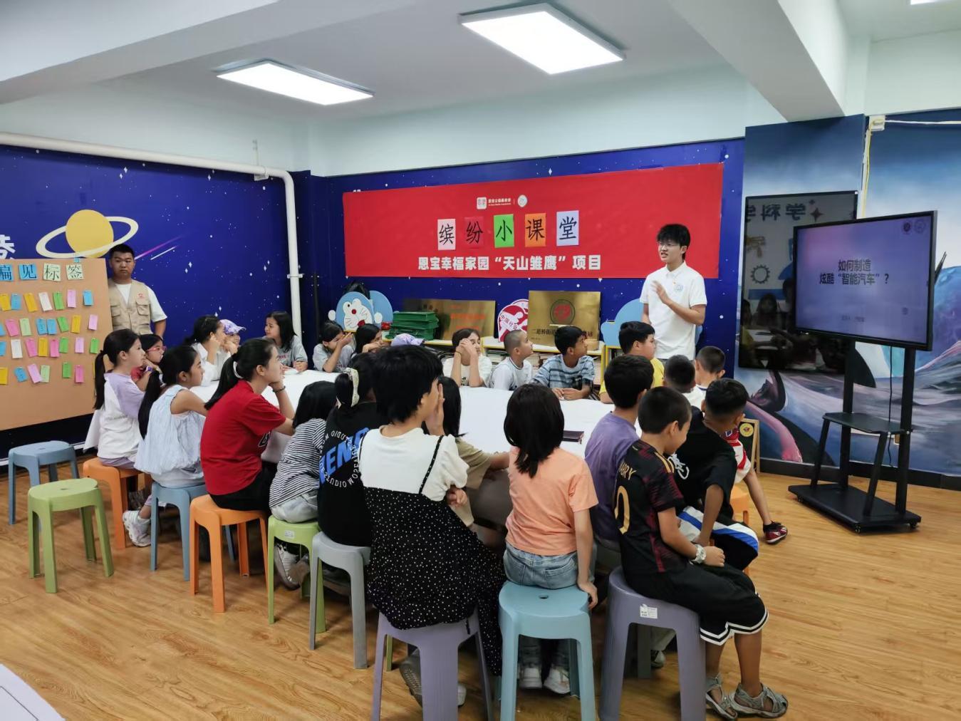 在固原巷社区,团队聚焦青少年科学素养与心理健康教育,联合恩宝幸福家园资助新疆智源社会工作服务中心开展的“天山雏鹰计划”项目,精心设计两场特色科普活动,吸引社区各族儿童参与,用趣味互动点燃科普热情。
