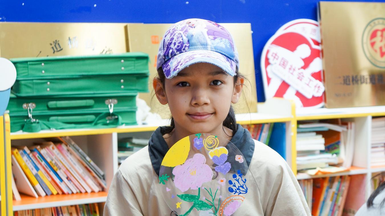 精工疗愈主题工坊则将艺术创作与心理健康教育相结合,让孩子们用丙烯笔在扇面上勾勒“我的世界”,从卡通形象到家庭场景,每一把扇子都成为独一无二的情绪表达载体。完成作品的孩子们拿着专属扇子,与新认识的小伙伴分享创作故事。