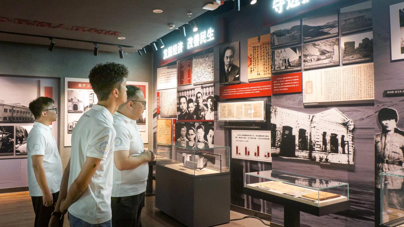 在八路军驻新疆办事处旧址,团队成员参观大量珍贵的历史文物、照片和文献资料,生动体会了陈云、邓发、陈潭秋等老一辈无产阶级革命家在新疆传播革命思想、开展抗日救亡运动、促进民族团结的艰辛岁月,深切体会到革命先辈们为了理想信念不惜牺牲一切的崇高精神。
